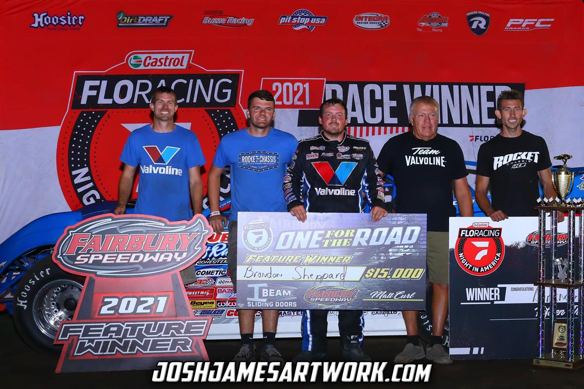 Monday night found the team at Fairbury (Ill.) Speedway, where they entered the second annual One For The Road presented by I-Beam Sliding Doors. The $15,000-to-win Castrol FloRacing Night in America event drew a field of 31 entries to the ¼-mile oval. Brandon qualified sixth fastest in time trials before winning his heat race to earn the third-starting spot for the night’s 50-lap feature. Sheppard worked his way to the lead on a lap 20 restart, and once out front never looked back on his way to his second-straight triumph in the event and his 15th overall win of the season. Tanner English, Bobby Pierce, Mike Spatola, and Gordy Gundaker completed the Top-5 finishers. (Josh James Artwork)